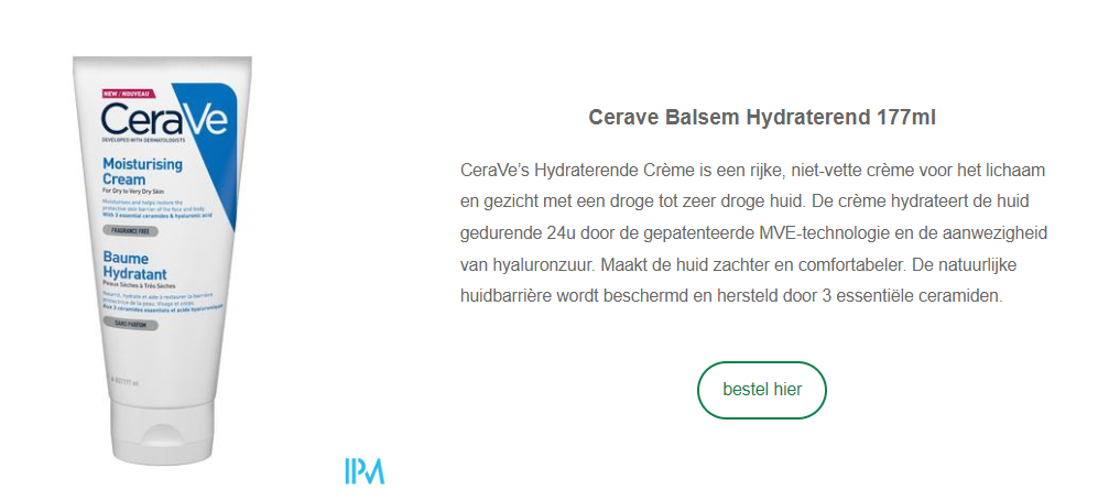 Heb je een aangeboren droge huid, gebruik dan een vettige zalf of crème. Heb je een gedehydrateerde huid, kies dan een hydraterende (vocht inbrengende) zalf, crème of lotion. Gebruik die zeker na het douchen en verzorg ook je handen. Heb je een gevoelige huid? Kies dan een product zonder parfum.